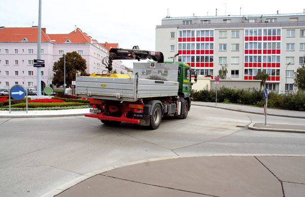 • Kruhové objazdy: pre vznikajúce veľké sily je mimoriadne dôležitá vysoká odolnosť proti deformácii (obr. 8).