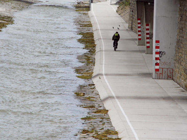 • Osobitné aplikácie: napr. chodník pre obsluhu a pomocný (súbežný) chodník viedenského riečneho kanála – vykazuje odolnosť proti častému zaplavovaniu (obr. 13).