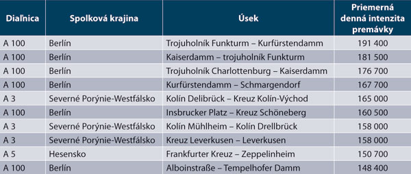 Tab. 1: Desať diaľnic s najrušnejšou premávkou v roku 2005 v Nemecku [2]