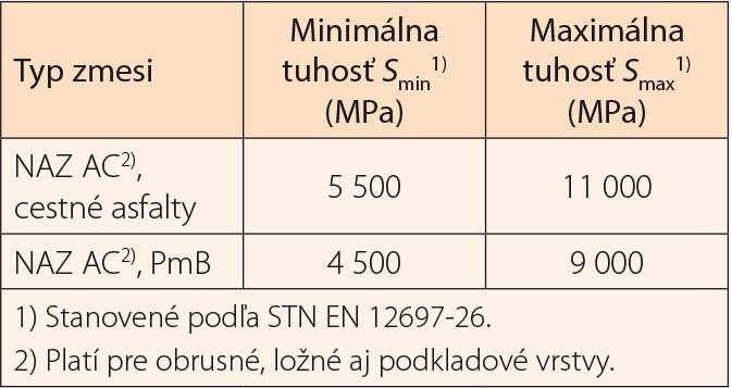 Tab. 2 Modul tuhosti asfaltových zmesí NAZ (AC)