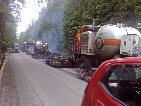 Zatiaľ posledná stavba realizovaná touto technológiou na Slovensku bola oprava horského priechodu cesty I/72 Čertovica v auguste 2009. Na realizovanom úseku cesty bolo požiadavkou objednávateľa dodržanie všetkých smerových a výškových prvkov existujúcej komunikácie. V prvej fáze sa odfrézovala degradovaná obrusná vrstva krytu vozovky v hrúbke 30 mm. Na základe vykonaných laboratórnych rozborov pôvodnej asfaltovej zmesi bolo potrebné doplniť chýbajúcu frakciu kameniva 8/16 a asfalt. Kamenivo sa pred nahrievaním infražiaričmi rozprestrelo drvičom na odfrézovanú časť vozovky. Nasledovalo nahrievanie pôvodnej vozovky, premiešanie s kamenivom a asfaltom, reprofilovanie a súčasné vtláčanie novej asfaltovej zmesi v hrúbke 30 mm. Hrúbka opravovanej vrstvy vozovky bola 80 mm.
