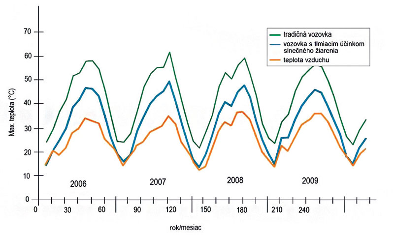 vozovky s ucinkom tlmiacim slnecne ziarenie
