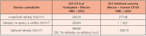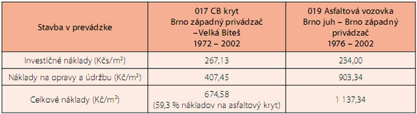Tab. 1  Celkové náklady – cesta D1 v Českej republike