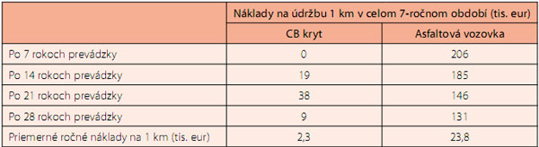 Konkrétne skúsenosti zo zahraničia umožňujú podložiť tvrdenia o ekonomickej výhodnosti cementobetónových vozovkách. Napríklad podľa výpočtov Riaditeľstva ciest a diaľnic ČR sú celkové náklady (investičné, opravy a údržba) pri cementobetónových (CB) vozovkách na porovnávaných úsekoch ciest D1 a D2 po 20, respektíve 30 rokov používania o 41, respektíve 65 percent nižšie než pri porovnateľných cestách s asfaltovým povrchom [1], [2].