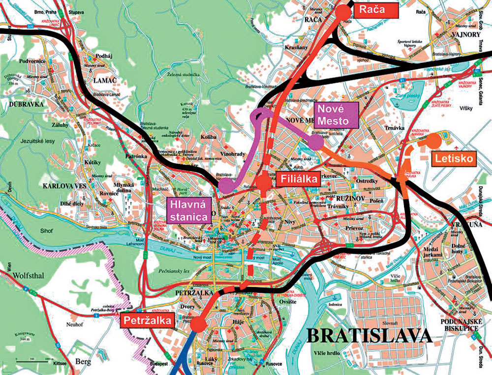 Bratislava niekoľko desaťročí zápasí s problémom sledovania dynamického rozvoja urbanistickej štruktúry a vytvárania adekvátneho protipólu v segmente hromadnej prepravy osôb. Rýchly rozvoj osobnej automobilovej dopravy spôsobil výraznú nerovnováhu v porovnaní s mestskou hromadnou dopravou. Zatiaľ žiaden z využívaných segmentov – autobusová, trolejbusová či električková doprava, poskytovaná v hlavnom meste – nedokázal zvrátiť zhoršujúci sa pomer individuálnej a hromadnej osobnej prepravy. Je preto prirodzené, že odborníci už od šesťdesiatych rokov minulého storočia hľadajú riešenie, ktoré by dokázalo tieto tendencie otočiť a využitím veľkokapacitného, ekologicky prijateľného dopravného systému zabezpečiť udržateľný rozvoj mesta.Systém koľajovej dopravy