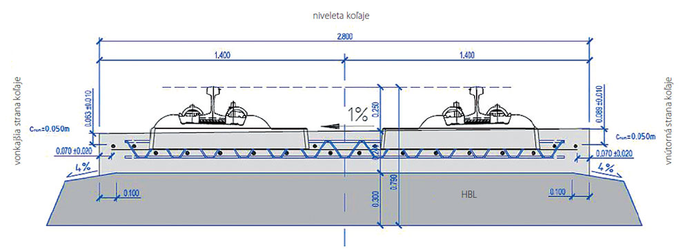 Na žiadosť zhotovovateľa stavby a s následným súhlasom vedenia ŽSR sa prefabrikovaný stavebný typ preprojektoval na monolitický Rheda 2000. Základný rozdiel je v tom, že uzly upevnenia sa dodávajú ako osobitný konštrukčný prvok v podobe dvojblokových podvalov a armovanie i betonáž zvrškovej dosky sa vykonáva priamo na stavenisku.