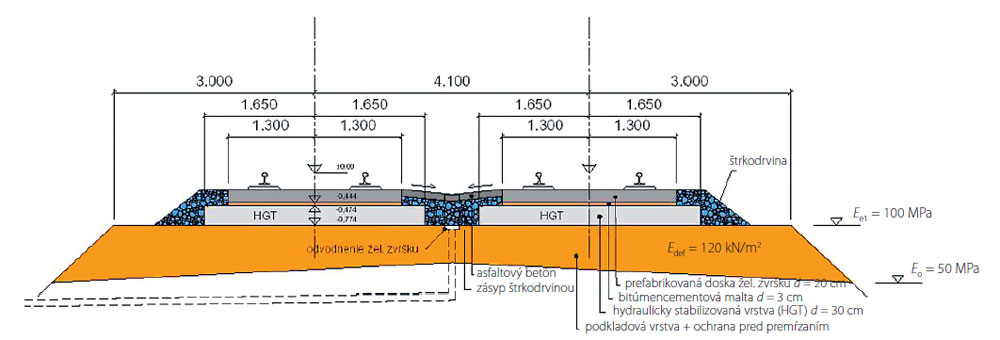 Podkladová vrstva pri takto nastavených požiadavkách únosnosti musí mať hrúbku až 80 cm pri súčasnej garancii modulu pretvorenia Eo = 45 MPa v hĺbke 1,75 m od pláne telesa spodku.