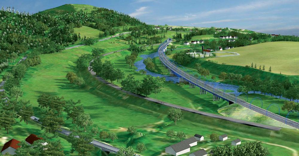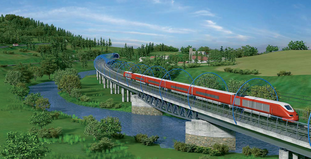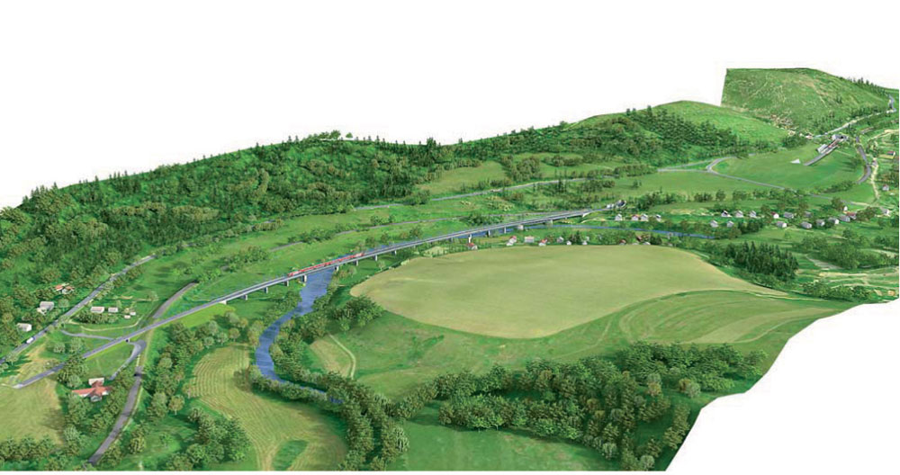 - umelé stavby ako: – železničné mosty – 28, nové cestné mosty – 4, podchody pre cestujúcich – 5 , batožinový podchod – 1 , priepusty – 19, oporné a zárubné múry – 25 , protihlukové bariéry – 8558 m