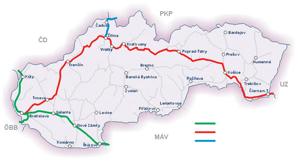 Optimalizované boli niektoré úseky IV. koridoru na Záhorí. Dokončený je modernizovaný úsek Bratislava – Nové Mesto nad Váhom na V. koridore. V roku 2011 boli ukončené práce na modernizácii VI. koridoru v úseku Žilina – Krásno nad Kysucou a v súčasnosti sa stavia na V. koridore v úseku medzi Novým Mestom nad Váhom a Púchovom.