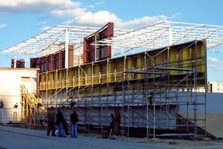Montáž lešenia na stavbe
