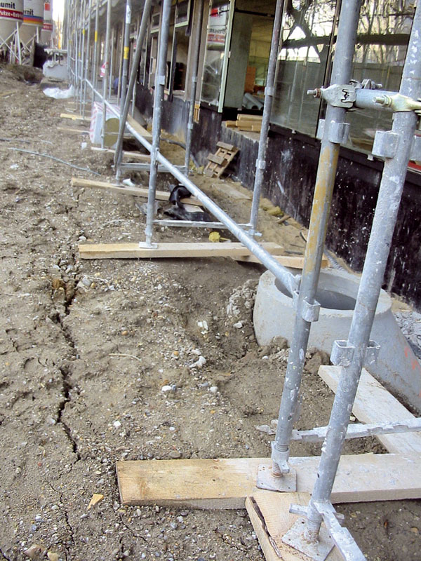 Horšie je to s kotvením do keramických tehloblokov, kde sa na stavbách namerala nosnosť kotvenia 3 až 4 kN. Pri pórobetóne však skrutka s príchytkou prenesie maximálne 1 až 2 kN. Možno povedať, že porušenie pevnosti základného materiálu je kritériom pri stanovení nosnosti kotvenia pálených aj pórobetónových stavebných materiálov. V týchto prípadoch je vhodné použiť iné typy kotvenia, príp. zvoliť také množstvo kotevných skrutiek, ktoré dokáže preniesť sily pôsobiace na konštrukciu lešenia kotveného aj do menej nosného stavebného materiálu.
