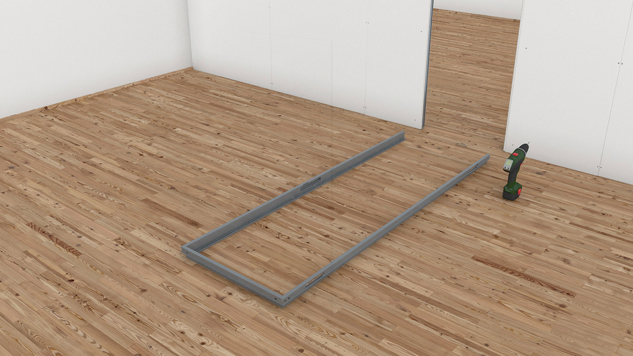 Sadrokartónová konštrukcia sa ponechá voľná, teda bez akéhokoľvek opláštenia. To sa upevní až po ukotvení skrytej zárubne. Ak je možné UA profily posunúť, odporúča sa stavebný otvor pripraviť presne na vonkajší rozmer zárubne. Ak to nie je možné, odporúča sa stavebný otvor vyhotoviť o jeden centimeter väčší, ako je vonkajší rozmer zárubne.