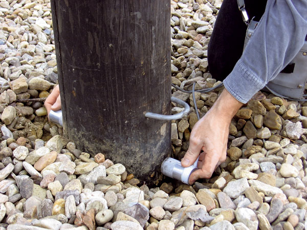 Pri určovaní rozsahu poškodenia stĺpov lanového centra sa vykonalo meranie kolmo na pozdĺžnu os stĺpov, a to vždy 0,5 m od seba. Každé miesto sa meralo dvakrát, a to v smere od východu na západ (V – Z) a od juhu na sever (J – S). Prvé meranie bolo tesne nad zemou, označované ako 0, ďalej 0,5; 1 a 1,5. V prípade merania naprieč vlákien bolo hodnotou nad 1 000 m/s označené zdravé drevo a pod 1 000 m/s poškodené drevo.