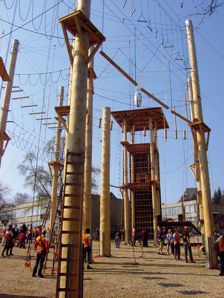 Lanové centrum bolo vybudované v roku 2003. Jeho konštrukcia pozostávala zo šestnástich jedľových stĺpov výšky 12 m s priemerom pri záhlaví 30 cm. Záhlavia stĺpov boli zabudované do betónových pätiek a stabilitu stĺpov zabezpečovali spevnené oceľové laná. Centrum bolo rozdelené na dve časti (hlavnú a vedľajšiu).