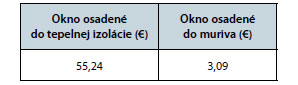 Náklady na kotvenie jedného okna do tepelnej izolácie sú o 52,04 € vyššie ako pri osadení do muriva (tab. 5).