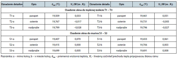 Tab. 3 Lineárny súčiniteľ prechodu tepla posudzovaných detailov