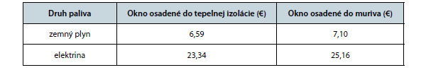 Prepočet potreby tepla na pokrytie tepelných strát pri prechode tepla výplňou sa realizoval s cenami platnými od 1. 10. 2008 za vykurovanie budovy zemným plynom a elektrinou. Ide o vyčíslenie nákladov na pokrytie tepelných strát vznikajúcich iba v mieste tepelného mosta okenným otvorom. V praxi treba vykonať komplexnejšie posúdenie, ktoré zohľadní aj veľkosť a typ budovy, orientáciu na svetové strany a podobne (tab. 4).