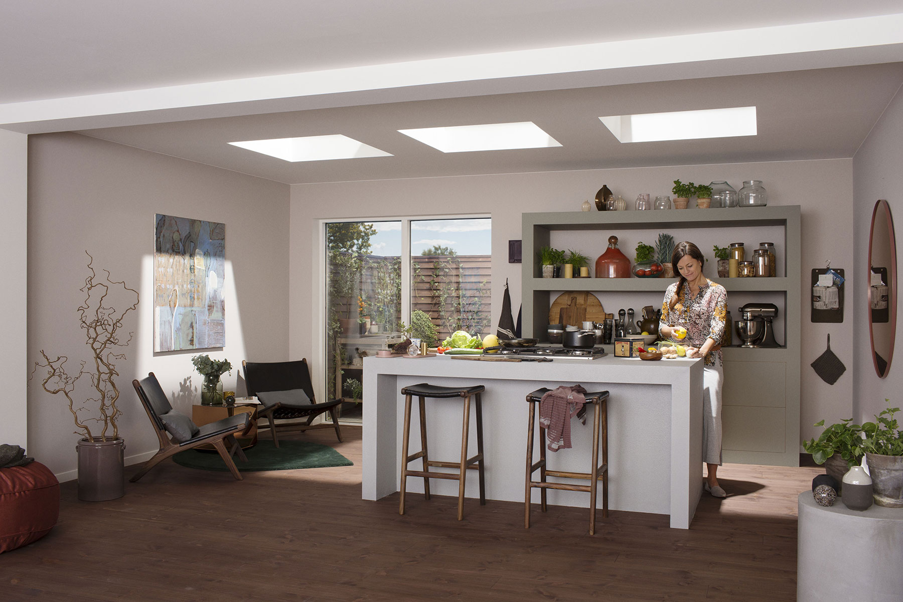 V porovnaní s fasádnymi oknami možno okno do plochej strechy umiestniť kdekoľvek, napríklad aj nad pracovnú plochu v kuchyni alebo nad písací stôl v detskej izbe.