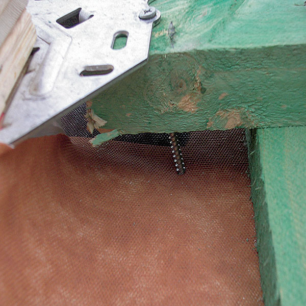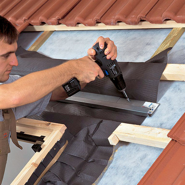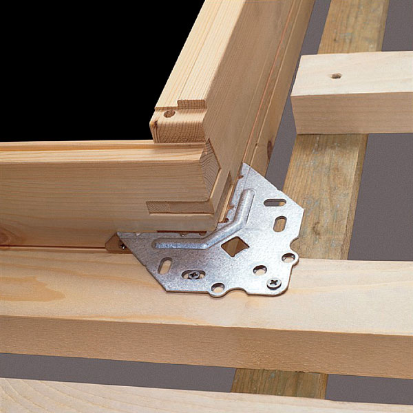 Rám okna sa upevňuje pomocou montážnych uholníkov na pomocné montážne laty (obr. 1). Vzhľadom na to, že strešné laty nezaručujú dokonalé pripevnenie rámu okna ku konštrukcii strechy, treba pomocou úpravy krovu (výmena, príložka) a dlhých skrutiek rám okna spevniť (obr. 2).