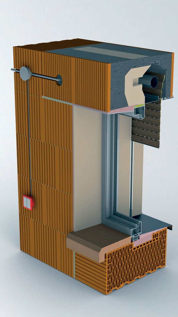 Vonkajšie rolety a žalúzie okrem ochrany pred svetlom slúžia aj ako ochrana pred teplom. V zime zasa majú schopnosť únik tepla znížiť. Okrem tepelnoizolačných vlastností tlmia aj zvuk – čo je nespornou výhodou najmä pri umiestnení stavby na rušnom mieste. Niektoré systémy tiež zvyšujú zabezpečenie domu proti násilnému vniknutiu, poskytujú teda aj ochranu pred vlámaním. Vonkajšie rolety a žalúzie možno montovať do schránok umiestnených dodatočne pri nadpraží otvoru pred okenným rámom. Druhou možnosťou je namontovať preklady pred vonkajšie rolety a žalúzie počas realizácie hrubej stavby. V tomto prípade je možné zvoliť nenosné preklady alebo vybrať preklady, ktoré nosné sú a zároveň tvoria schránku na osadenie tieniacich systémov (obr. 1). Nosné preklady sú univerzálne a je možné do nich osadiť rolety alebo žalúzie. Navyše umožňujú kompletne dokončiť stavbu bez toho, aby vonkajšie tieniace systémy museli byť namontované hneď. Samostatné tieniace systémy môžu pôsobiť na novostavbe neesteticky a pri ich montáži môže dôjsť k poškodeniu omietky a pod. Ak sa preklady montujú priamo do hrubej stavby, tomuto riziku sa možno vyhnúť. Samotný tieniaci systém možno do zabudovaného prekladu namontovať kedykoľvek v priebehu používania stavby.