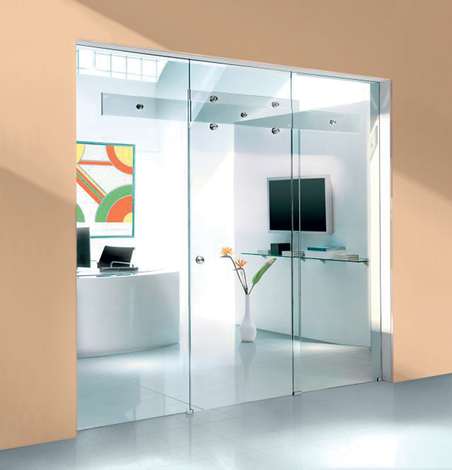 Za zmienku stojí aj jednoduché riešenie Vetroslide (Geze) založené na sklenenej vodiacej lište s maximálnou dĺžkou 2,5 m a svetlou šírkou otvoru do 1 m. Dverné krídlo do hmotnosti 80 kg sa pohybuje na kolieskach s plastovým povrchom.