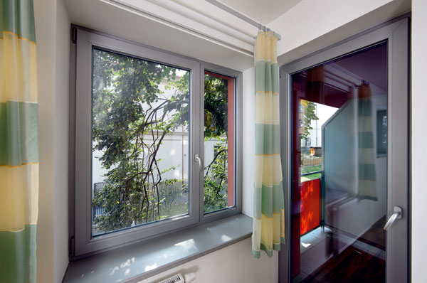 Dodávateľská spoločnosť skĺbila izolačné dvojsklo s kvalitným rámovým profilom so zaobleným okenným krídlom. Šesťkomorový plastový rámový profil má stavebnú hĺbku 76 mm. Vyšší počet dutín kolmých na smer tepelného toku prispieva k vyššej povrchovej teplote okna, eliminácii kondenzácie vodnej pary na okennej konštrukcii a zníženiu prechodu tepla okennou konštrukciou. Osadením dorazového i stredového tesnenia s tepelnou izoláciou sa dosiahol súčiniteľ prechodu tepla rámom Uf = 1,1 W/m2 . K. Dvojsklo vyplnené argónom dosahuje hodnotou súčiniteľa prechodu tepla zasklením Ug ≤ 1,1 W/m2 . K. Voľbou správnej skladby kvalitného zasklenia sa podarilo dosiahnuť optimálne tepelno-technické parametre okna ako celku.