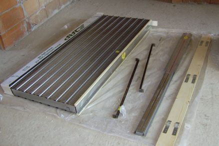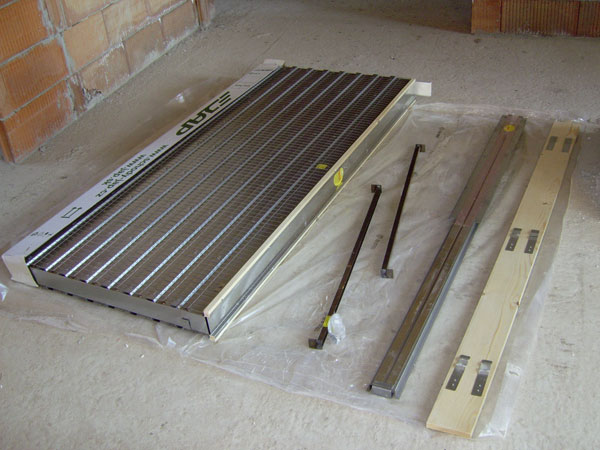 - Pred montážou puzdra je dôležité vybetónovať alebo vymurovať podložku, na ktorú sa postaví jeho pevná zmontovaná časť. Tá musí výškou zodpovedať konečnej úrovni podlahy. To znamená, že treba vypočítať, o koľko centimetrov bude podlaha vyššia (vyliata betónom, s izoláciou a hornou vrstvou – napr. parketami) (obr. 2).