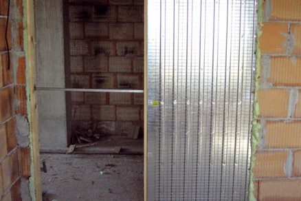 - Po vytvrdnutí peny (asi po troch hodinách) možno začať stenu omietať. Do omietky by sa mala používať perlinková sieť, ktorá v miestach spojov medzi kovovým puzdrom a stenou zabráni vzniku trhlín v budúcnosti.