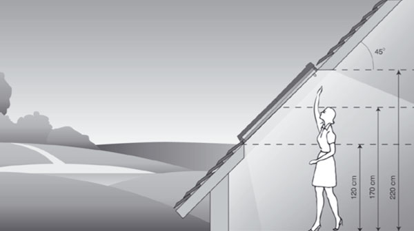 - presvetlenie – plocha strešného okna je minimálne 10 % podlahovej plochy miestnosti; treba počítať aj so zatemnením;