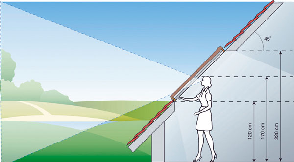 Ak sa požaduje pohľad von, je rozhodujúca výška dolnej hrany okna, pritom si však treba uvedomiť, že dovnútra vidí aj sused. Veľmi pôsobivé je spojenie fasádneho (zvislého) okna so strešným oknom, tzv. fasádne napojenie.