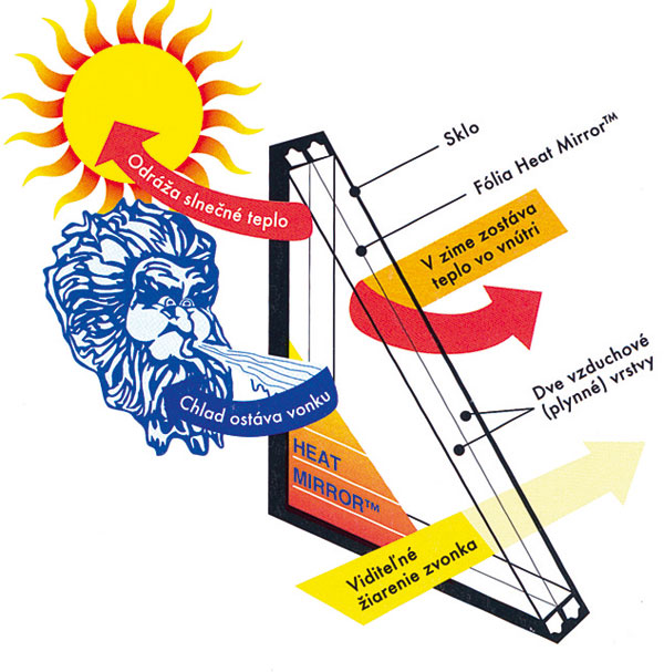 Podstatu jeho systému tvorí polyesterová fólia pokrytá špeciálnymi vrstvami oxidov kovov v šiestich až dvanástich vrstvách, ktorá selektívne prepúšťa slnečné žiarenie. Táto fólia sa vzhľadom na svoje schopnosti odrážať tepelné infračervené žiarenie označuje ako tepelné zrkadlo. Najčastejšie sa používa ako aplikácia strednej vrstvy medzi dvoma transparentnými sklami v izolačnom dvojskle. Technológia tepelného zrkadla bola vyvinutá na využitie v kozmickom priemysle v extrémnych podmienkach otvoreného kozmu. V závislosti od typu a spôsobu použitia fólie pri technologickom procese výroby izolačného dvojskla Heat MirrorTM možno dosiahnuť súčiniteľ prechodu tepla Ug = 0,9 až 0,3 W/(m2 . K).