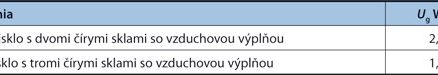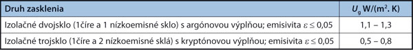 Tab. 3: Súčiniteľ prechodu tepla nízkoemisných systémov zasklenia (dvojsklo a trojsklo)