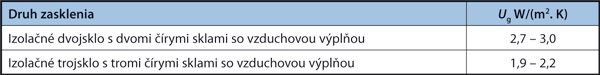 Tab. 1: Súčiniteľ prechodu tepla štandardných izolačných skiel