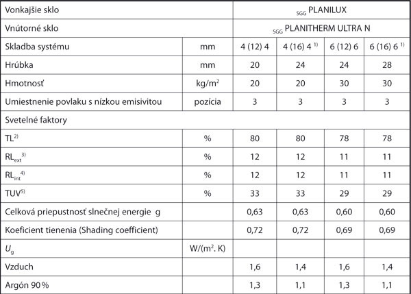 Tab. 2: Základné charakteristiky nízkoemisného izolačného systému zasklenia