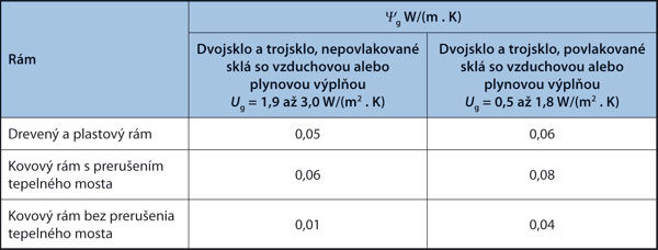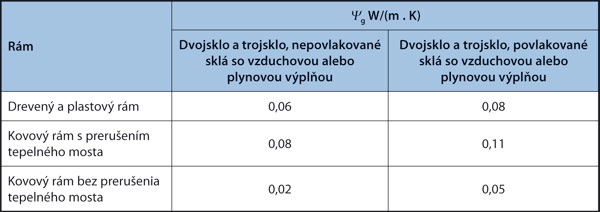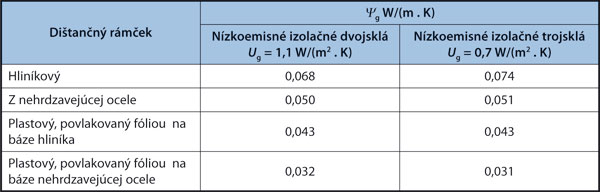 Tab. 5: Hodnoty Ψg pre dištančné profily na báze nehrdzavejúcej ocele a na báze plastu vystuženého sklenenými vláknami (podľa EN ISO 10077-1/2006)