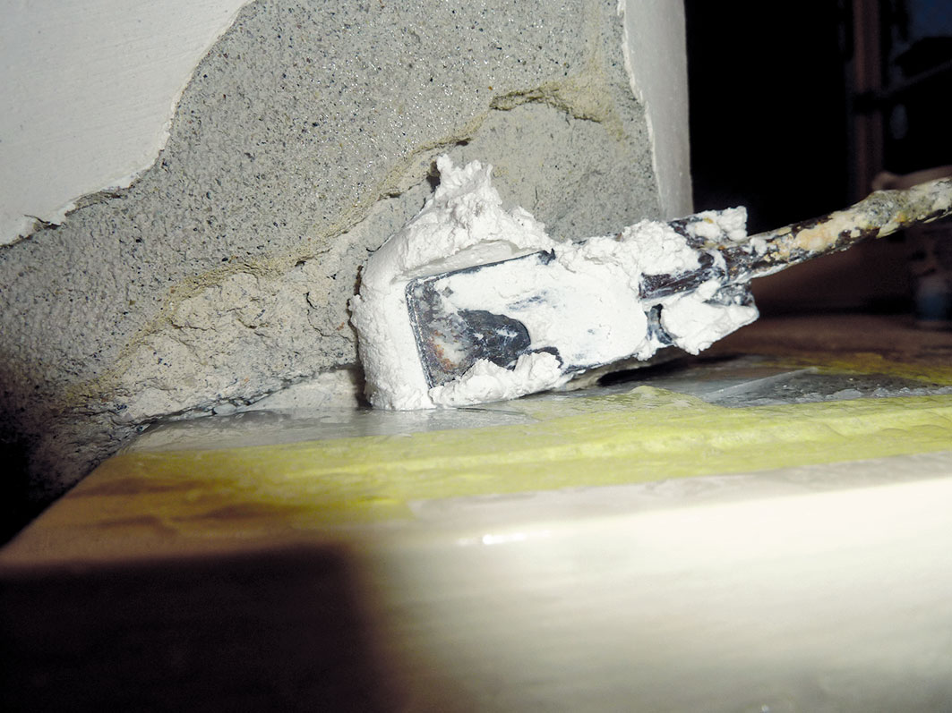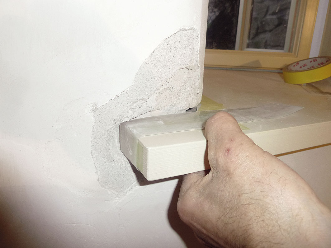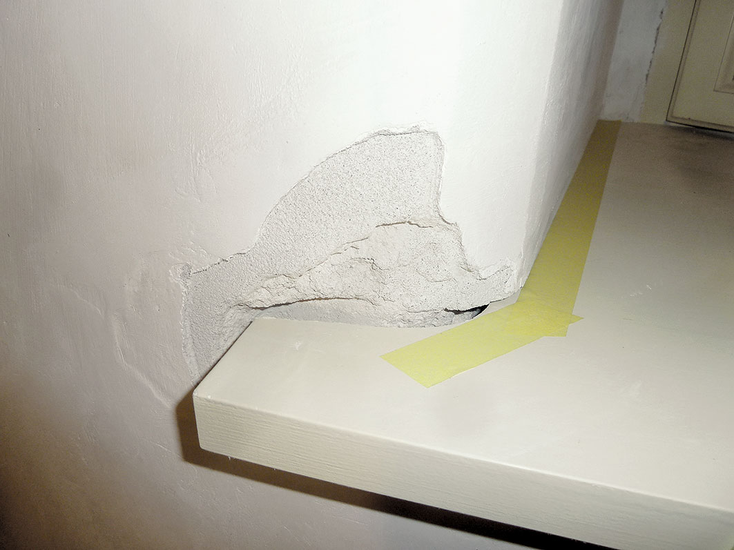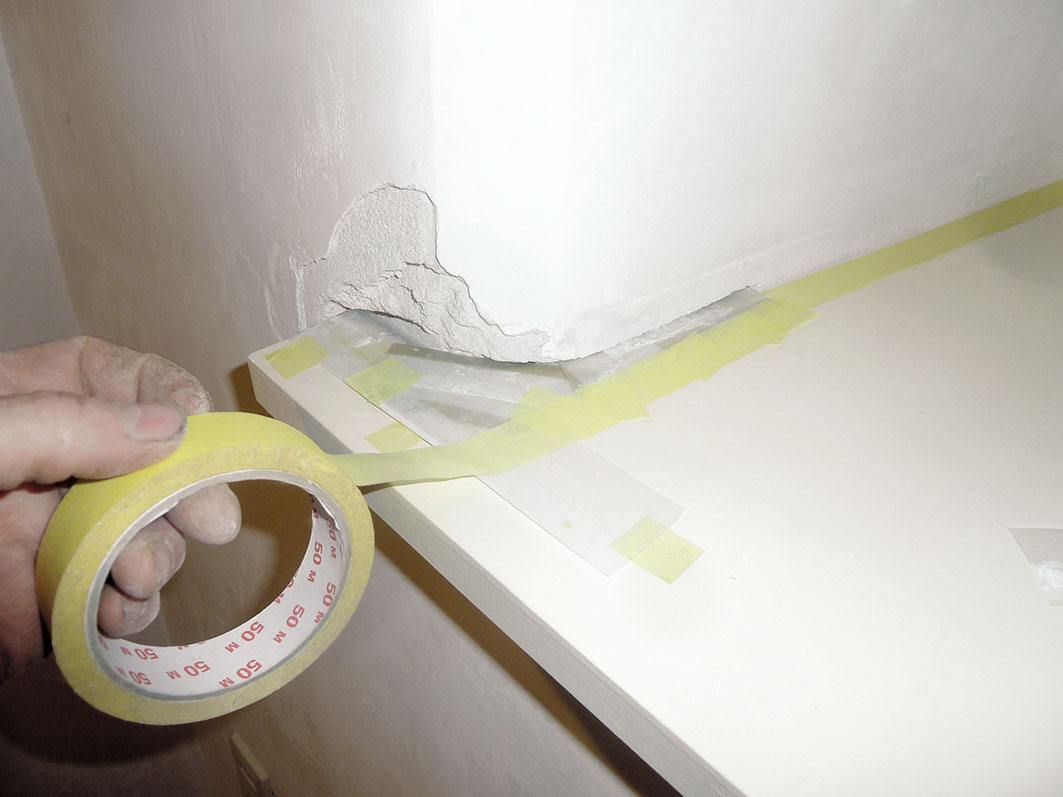 Pri pohyboch parapetnej dosky môže omietka popraskať. Všetky nesúdržné časti je potrebné odstrániť jemnými sekáčikmi, parapet treba pritom chrániť páskou.