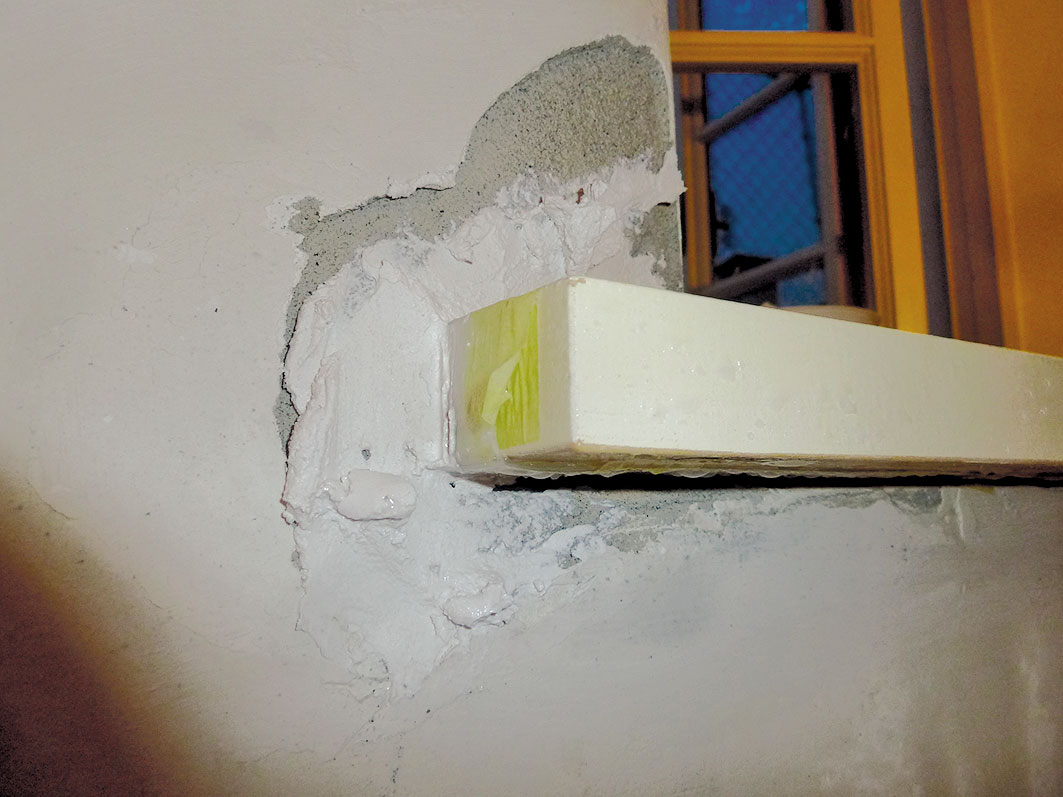 Zmes na plombovanie sa namieša podľa skúseností. V tomto prípade sa volila zmes sadry a vápennej kaše. Na väčšie nerovnosti možno použiť zmes s prídavkom piesku.