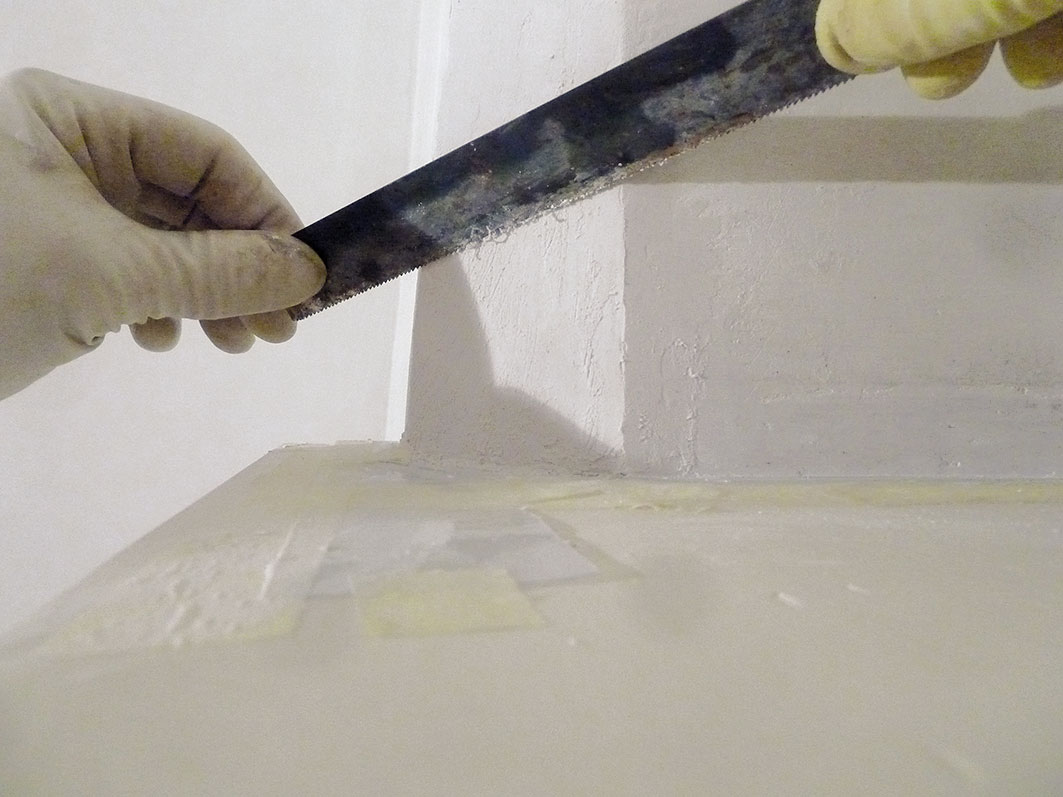 Aby bolo možné povrch opracovať jemnejšie, je potrebné vyrovnané plochy so stopami po zuboch pílky nechať trocha obschnúť.