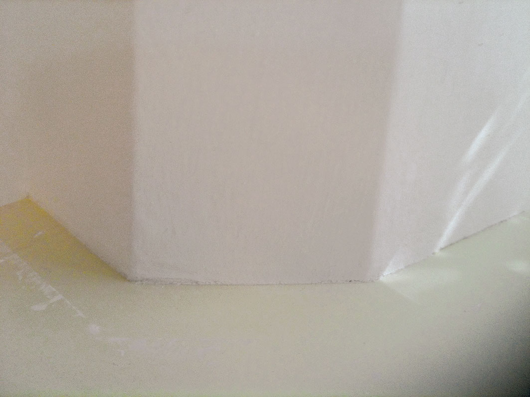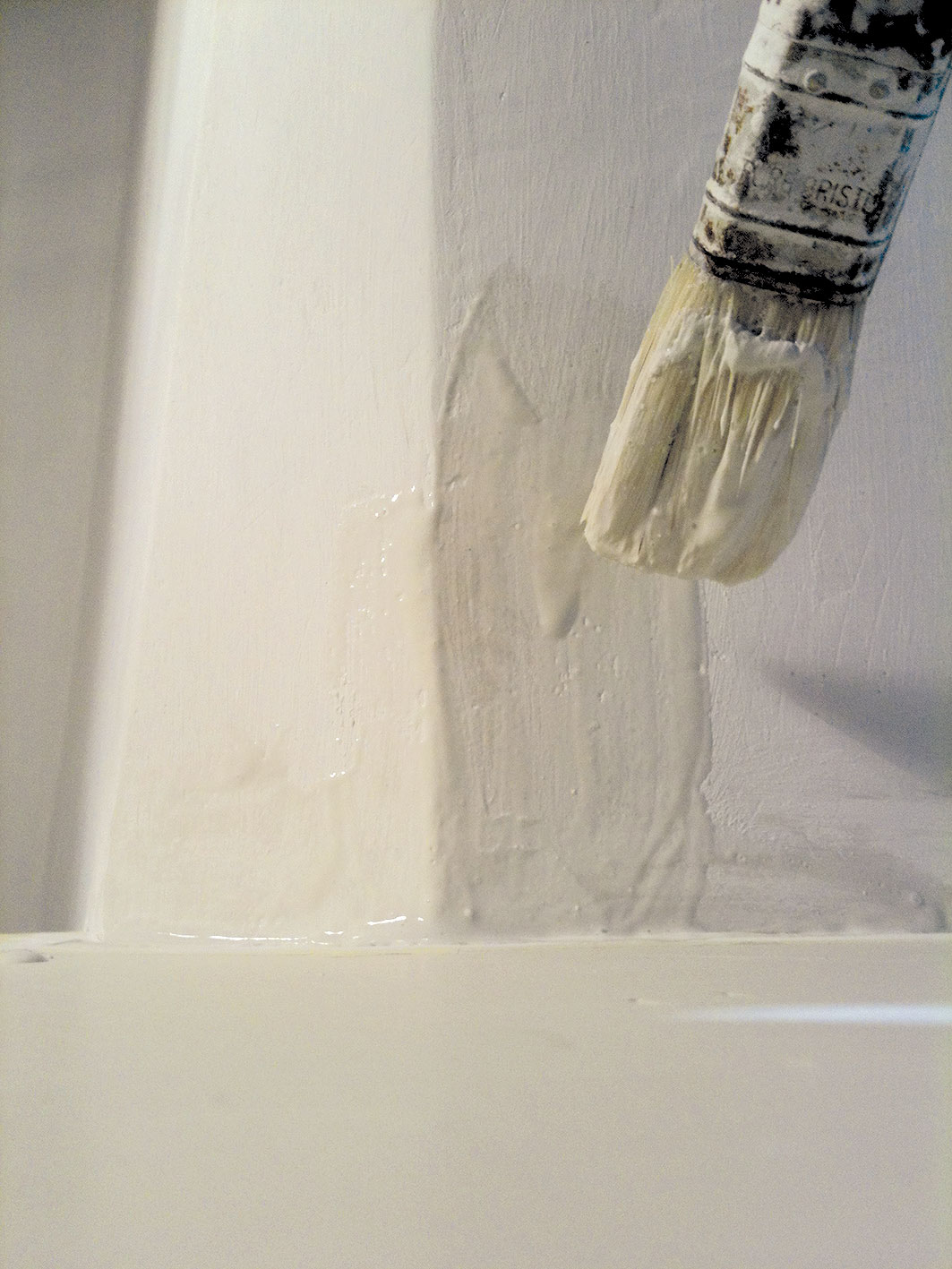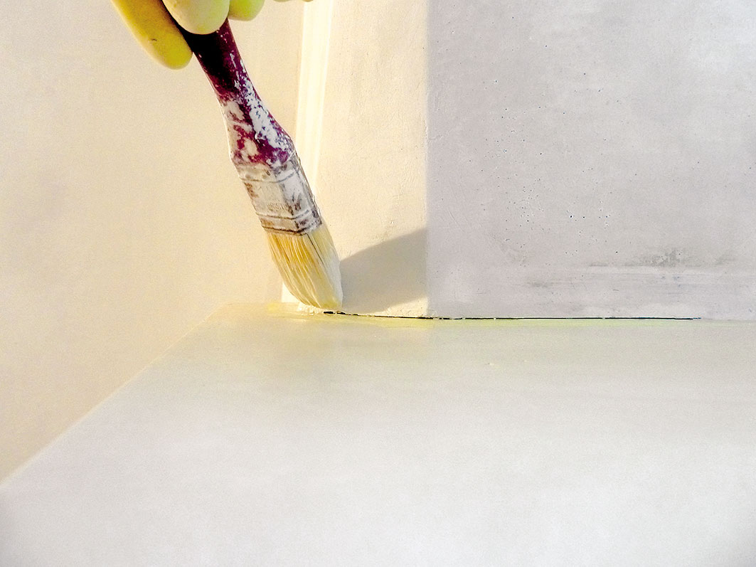 Zvyšky náteru sa očistia suchou hubkou alebo handričkou. Následne sa jemným štetcom zaretušujú prípadné nedokonalosti náteru v styku ostenia a dosky parapetu.