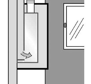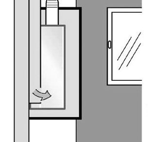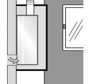 Obr. 4 Umiestnenie plynového nástenného uzavretého spotrebiča v skrini v miestnosti