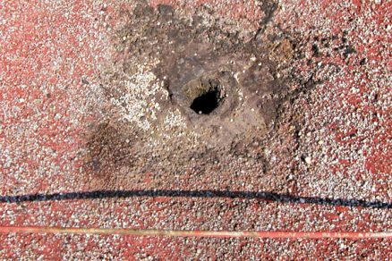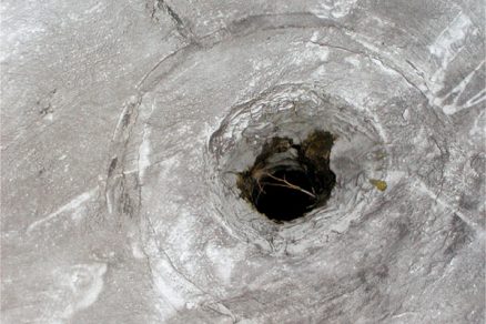 | Všetky konštrukčné detaily odvodnenia, a najmä žľaby, musia mať šikmé steny, aby voda, ktorá v nich zamrzne, ich neroztrhla. | Ošetrenie vpustu akrylátovými stierkami bez akéhokoľvek lapača naplavenín. Prierez vpustom je v porovnaní s pôvodným značne zmenšený. |