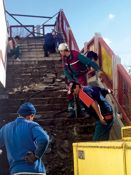 Poruchy vonkajšieho schodiska nad interiérom obchodného centra
