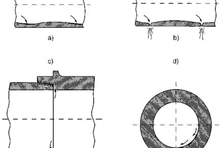 a – plošná korózia, b – bodová korózia, c – dotyková korózia, d – korózia eróziou
