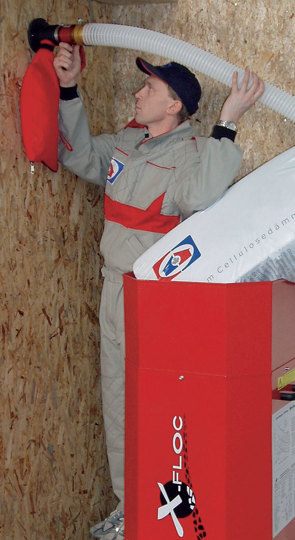 Tepelnú izoláciu z drevných vlákien, ktorá vznikla recykláciou novinového papiera, možno po dožití stavby biologicky odbúrať. Podstatu izolácie tvoria drevné vlákna impregnované proti horeniu, škodcom a plesniam. Tepelne či akusticky ňou možno už od roku 1991 izolovať stropy nevykurovaných pivníc, podlahy nad zeminou, steny medzi vykurovaným a nevykurovaným priestorom (UN ≤ 0,3), zatepliť strechu alebo najvyšší strop (UN ≤ 0,15) a aj vonkajšie steny (UN ≤ 0,25). Izolácia sa vyznačuje nízkym difúznym odporom, a tak sa uplatní aj pri konštrukciách s difúzne otvorenou skladbou. Pre Climatizer Plus zhotovený z voľne neviazaných celulózových vlákien udáva výrobca tepelnú vodivosť izolácie λ ≤ 0,040 (laboratórna hodnota λ = 0,035), má aj vysokú hodnotu mernej tepelnej kapacity – 1 907 J/kg, vďaka čomu celulózová izolácia vylepšuje vlhkostný a tepelno-akumulačný režim v obytnom dome. (foto a výroba: Ciur)