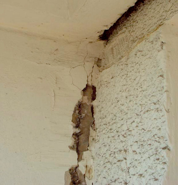 Poškodenie styku medzi stenovým lodžiovým panelom a hlavným objektom