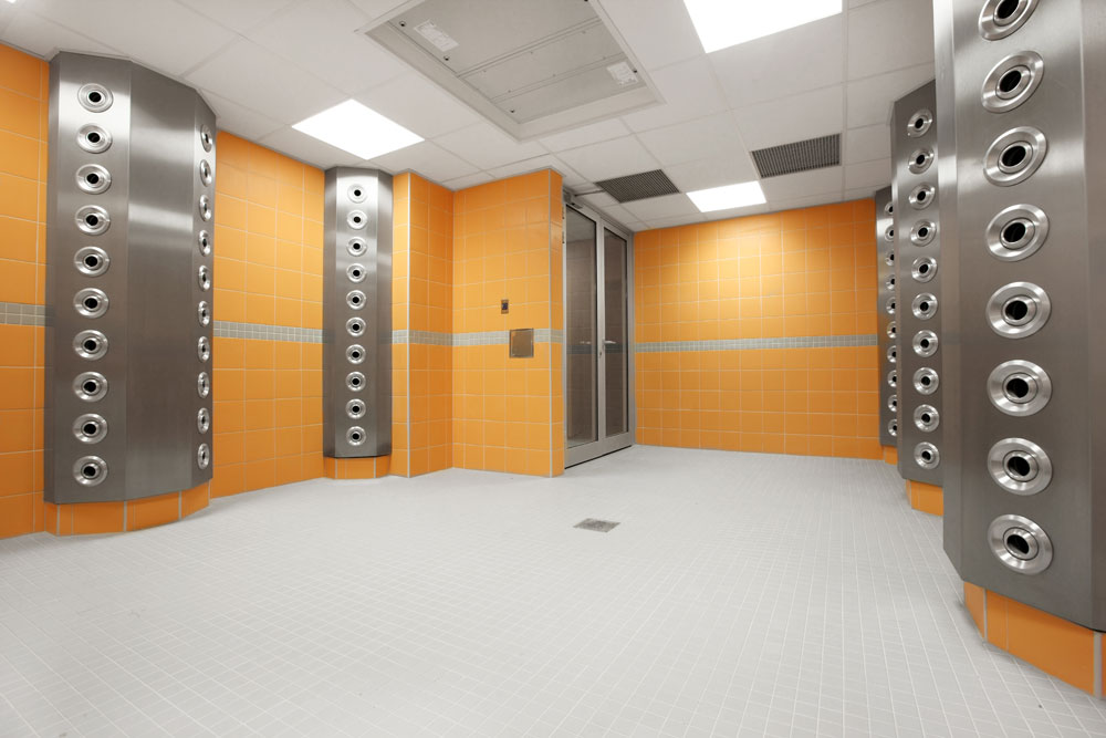 Na pôchodzne plochy okolo bazénov a v sprchách sa použil dekoratívny škárovací materiál Kerapoxy Design. Napriek vyššej cene sa jeho použitie oplatilo.