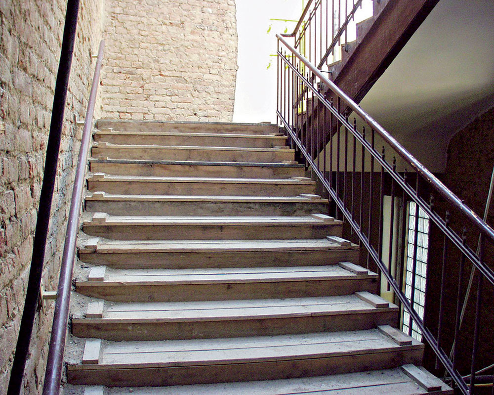 V prípade rekonštrukcie pamiatkovej budovy je nutné riadiť sa normatívnymi požiadavkami kladenými na zábradlie, iba ak ich rešpektovanie nevedie k zníženiu pamiatkovej hodnoty budovy (obr. 4). Z toho vyplýva, že zábradlie môže byť aj nižšie, ako je bežne predpísané.