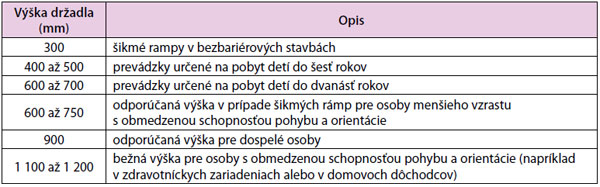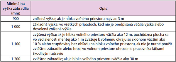 Tab. 1 Minimálna výška trvalého zábradlia (vrátane držadla) ako ochrany proti pádu