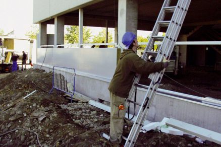 Príklad bezpečnej práce na jednoduchom rebríku Pohodlná práca na dvojitom rebríku