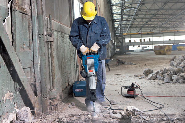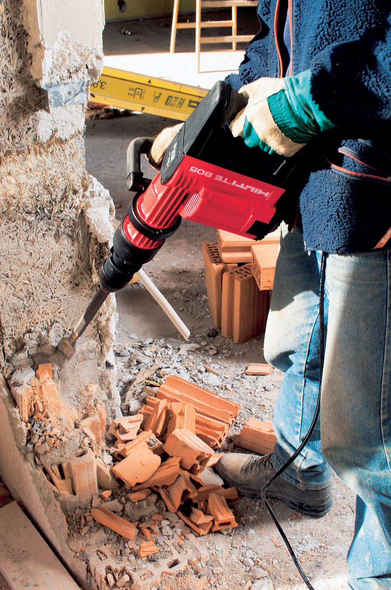 Na zložité prerážacie a búracie práce je nevyhnutné použiť búracie alebo demolačné kladivo v hmotnostnej triede od 16 do 30 kg, zvyčajne s príkonom 1 200 až 2 200 W (obr. 2 a 3). Driek upínacích sekačov, špiciakov (druh čakana) a ubíjadiel má tvar šesťhranu s profilom 28 alebo 30 mm. Náradie, ktoré vzhľadom na jeho vysokú hmotnosť treba na pracovisku prevážať vozíkom s príslušenstvom, má spravidla silu úderu od 25 do 60 J.